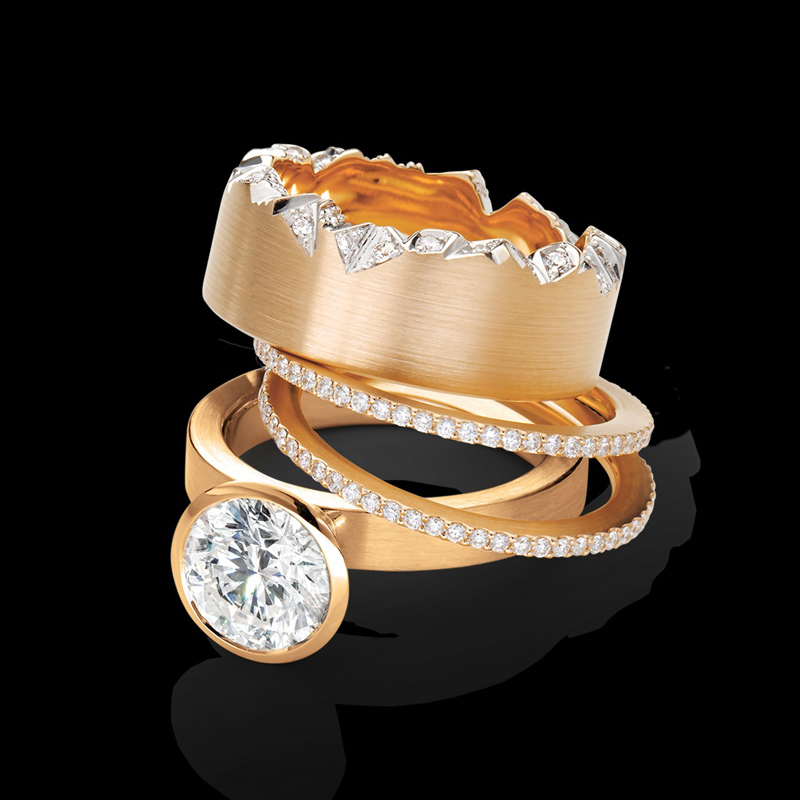 Für Frauen erzählt die Alpen Kollektion von Licht, Wärme und Natur. Feine Ringe und Beisteckringe aus Gold sind inspiriert von glitzernden Gipfeln, vom Schimmern des Schnees und vom warmen Alpenglühen am frühen Abend. Die Brillanten wirken wie kleine Einschlüsse aus der Natur, lebendig und voller Tiefe. Jeder Ring entsteht mit großer Sorgfalt und verbindet handwerkliche Präzision mit einer starken emotionalen Aussage. Ob als Solitär oder als Kombination mehrerer Ringe, dieser Schmuck fühlt sich an wie ein persönliches Erinnerungsstück an besondere Wintermomente in den Bergen.
